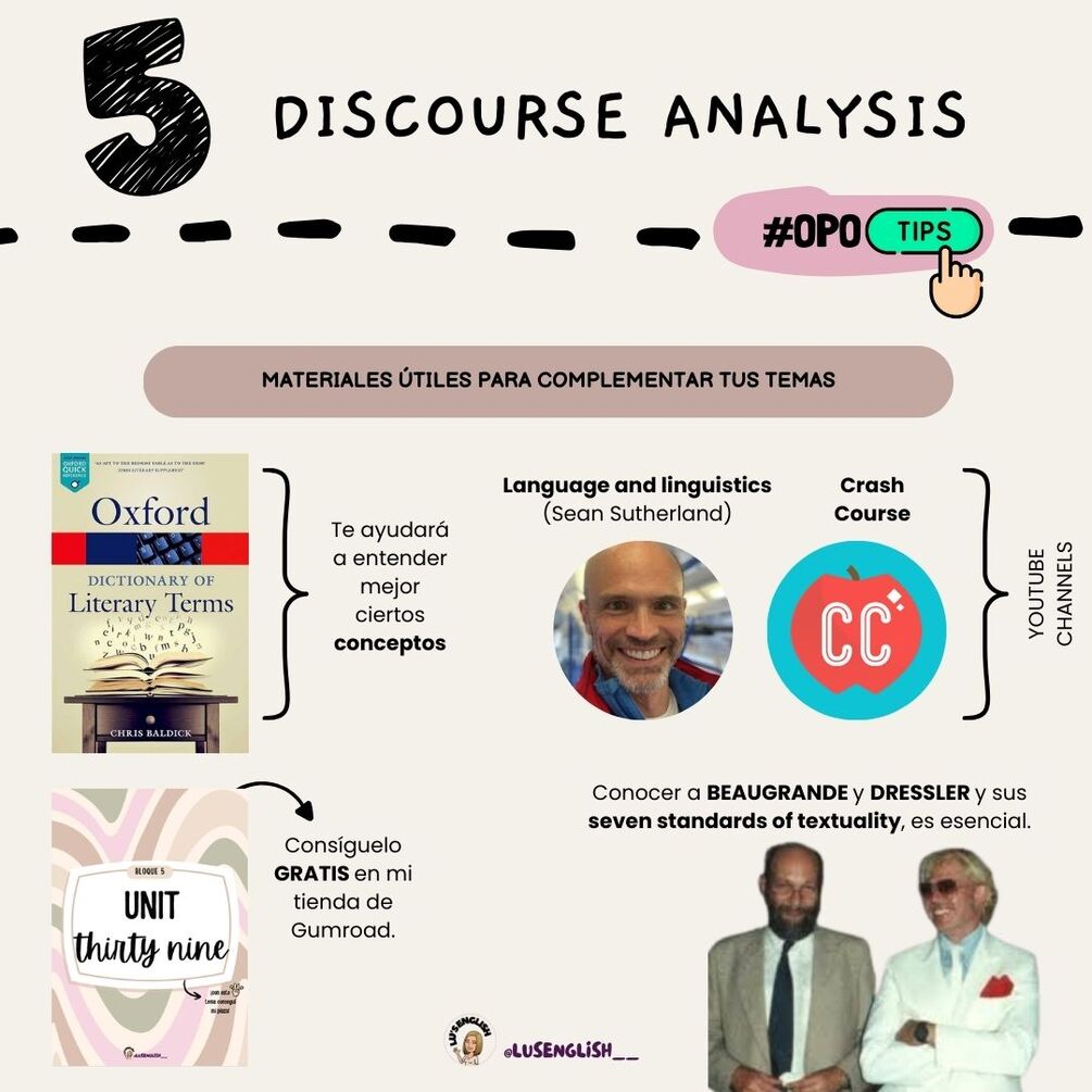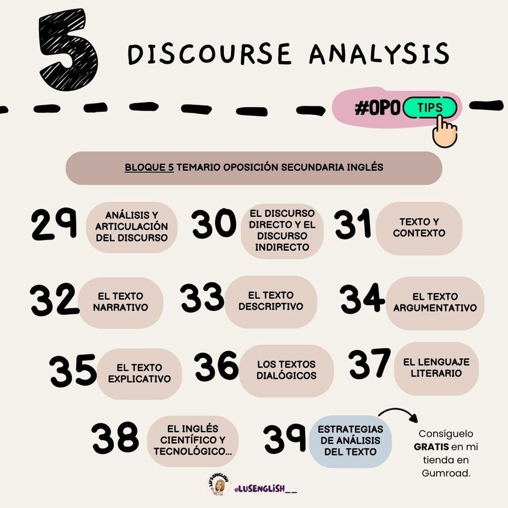 Quinto bloque de temas de la oposición de inglés de secundaria: DISCOURSE ANALYSIS.